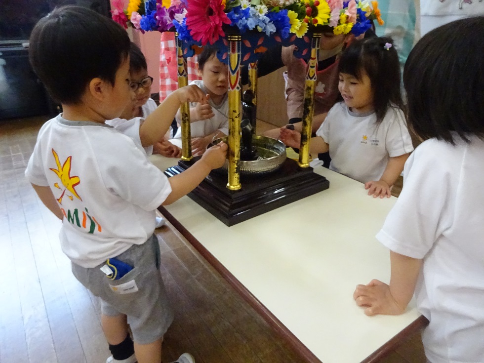 園長先生が大好きなもも組の子ども達、ちょっぴり緊張気味でしたが、上手にできました。