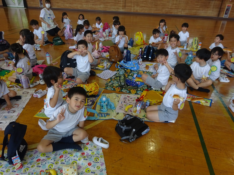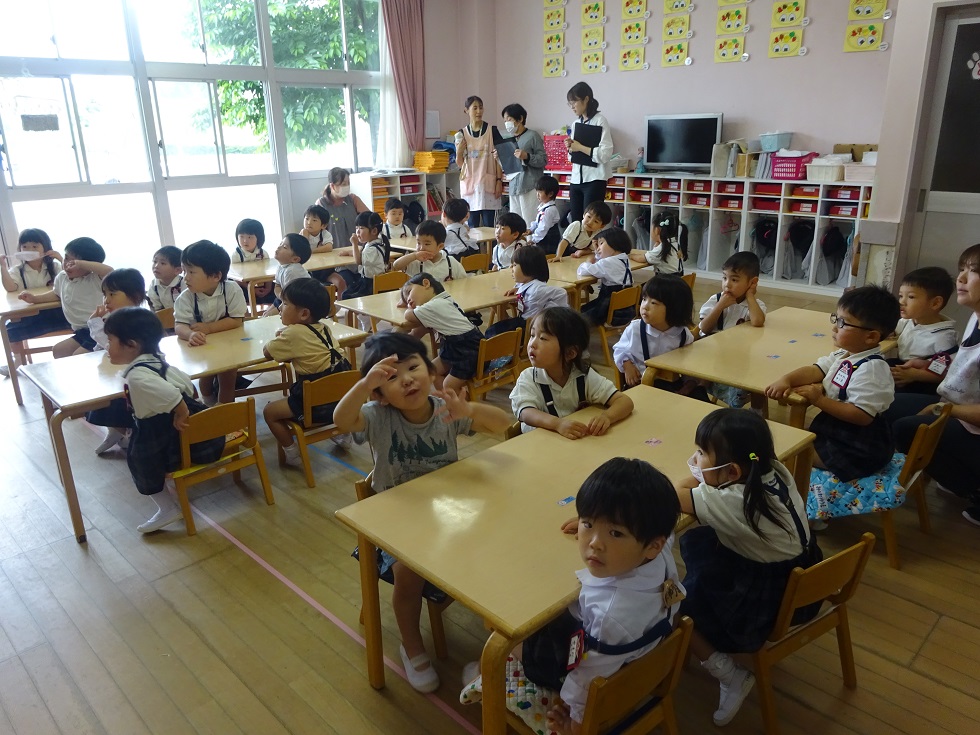 園長先生と3つの約束をし、園歌、ヤッホッホ夏休みを歌いました。