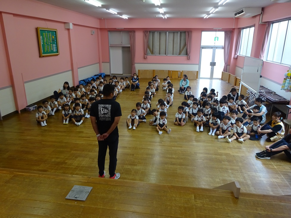 その後、お巡りさんからの話を聞き「いかのおすし」のダンスを踊り、皆で知らない人にはついていかないお約束をしました。