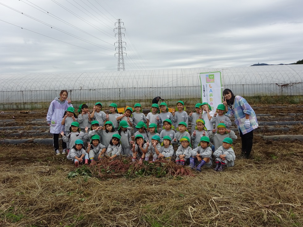 とびきりの笑顔で穫れたさつま芋を見せてくれました。