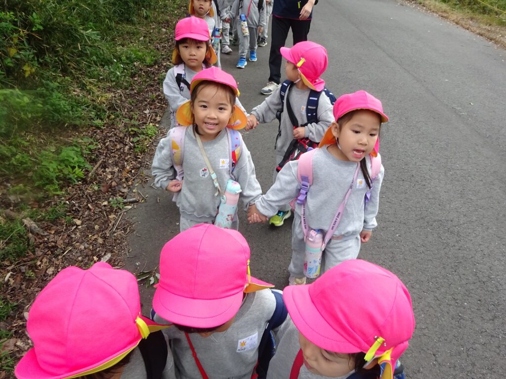 がんばって山を登りました。途中で、楽しく歌を歌いながら元気に歩くことが出来ました。